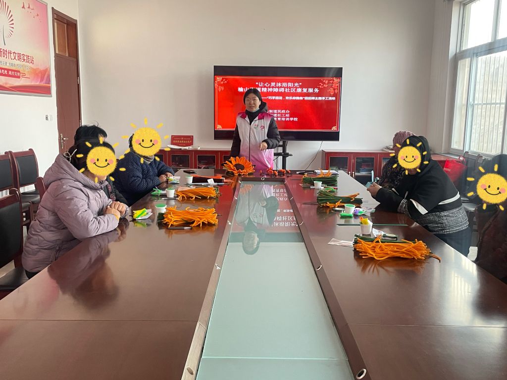 为了丰富老年人的精神文化生活,尤其是增添老年残疾群体的生活乐趣,树立正确的自我认知,提高对生活的信心,更好地帮助残疾人融入社会,实现自我价值,协助他们建立起社会支持网络,1月12日,榆山街道社工站联合榆山街道民政办、榆山街道新博士村和平阴县启贤教育培训学校开展了残疾老年人“巧手扭花 欢乐你我他”扭扭棒手工主题活动。