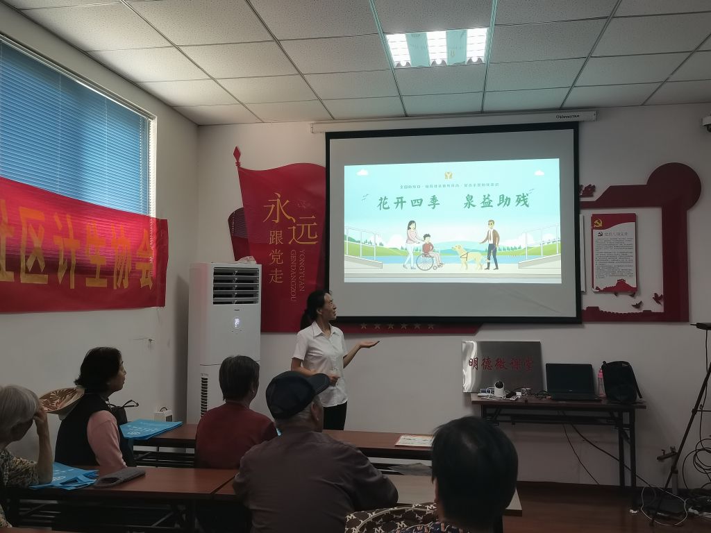 为加强残疾人群的法律意识,满足残疾人对法律服务的需求,同时为残疾人提供精准、优质的法律服务,5月20日,东风街道社工站联合新园社区共同开展了“花开四季 泉益助残”的普法宣传活动。
