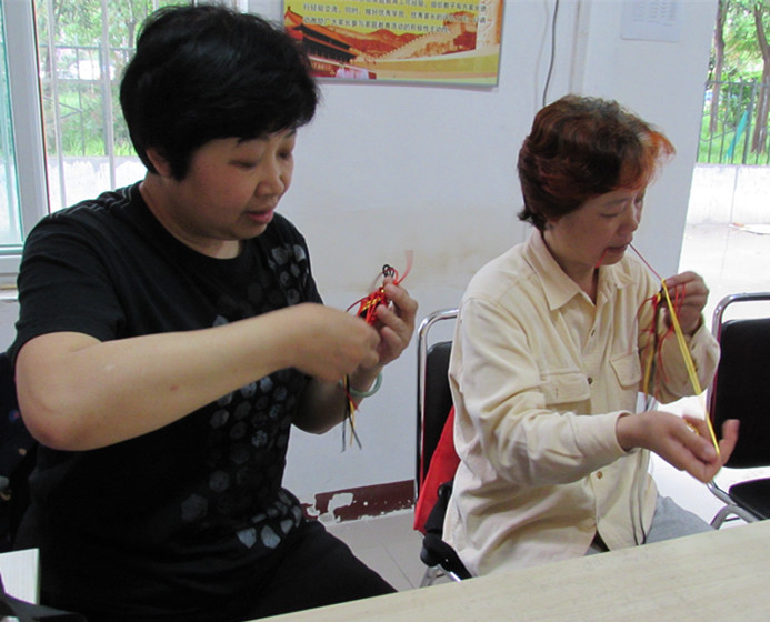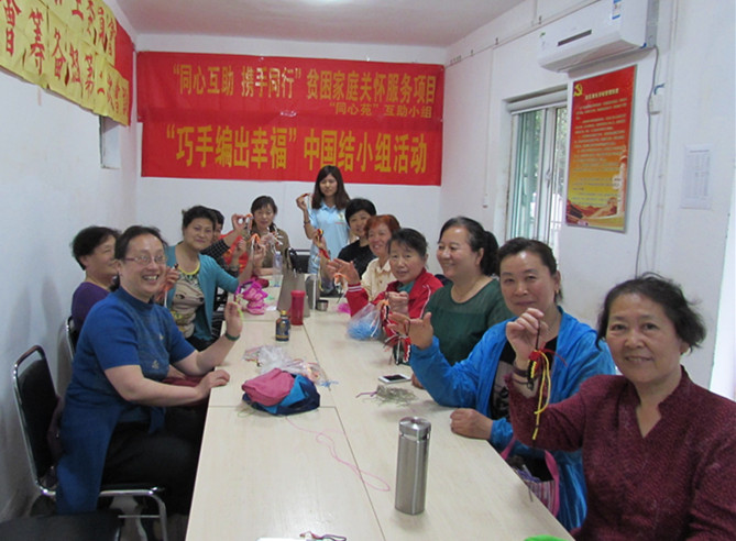 “巧手编出幸福”中国结兴趣小组是“萤火虫”社工项目组联合槐村街社区依托“同心互助 携手同行”贫困家庭关怀服务项目组织开展的小组活动,自开办以来,一直很受社区居民的欢迎。5月8日下午,小组开展到第二节,组员表现的很积极。