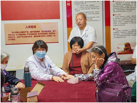 讲座结束后,医生针对居民的健康状况开展了义诊活动,提供中医把脉、颈肩腿部按摩、免费血压、血糖检测服务等,针对大家提出的健康养生问题一一进行解答并提出合理化建议,义诊活动受到现场群众的一致好评。