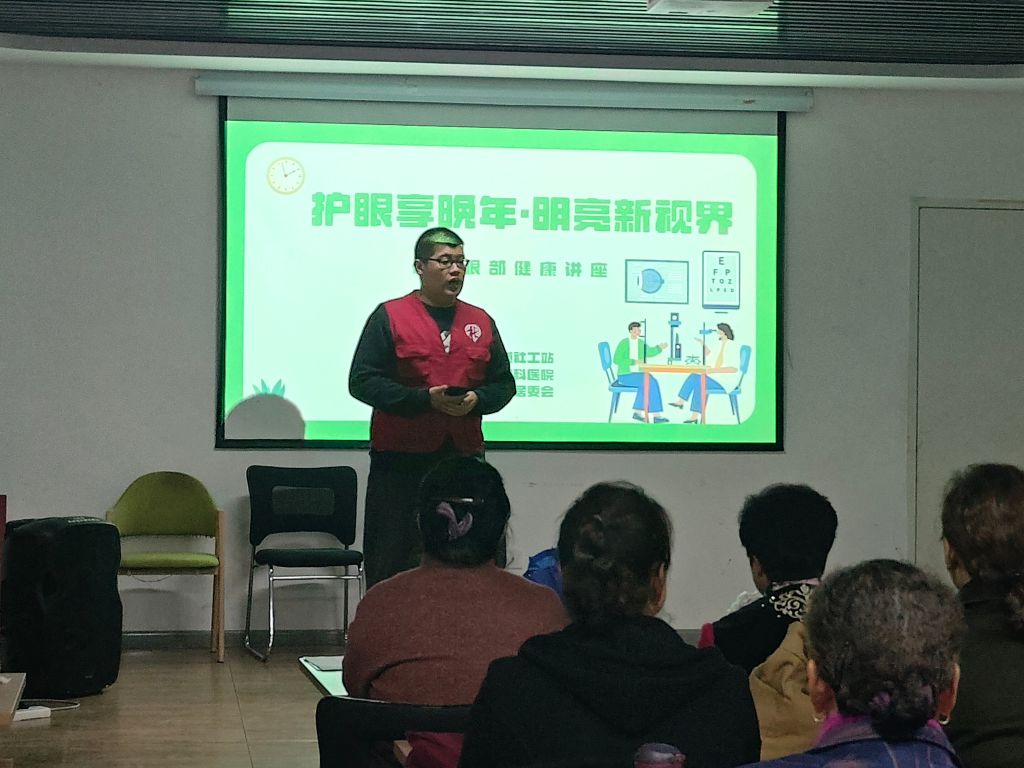 在前期走访调研中,社工发现相当一部分辖区老年人因行动不便、信息获取渠道有限等原因,存在对眼部健康知识的了解不足,缺乏定期的眼部健康检查等问题,11月21日,社工站联合普瑞眼科医院与信义庄社区开展“护眼享晚年·明亮新视界”老年人眼科健康讲座活动,旨在通过讲座和筛查的形式,增强老年人的眼部健康意识,提高老年人生活质量水平。
