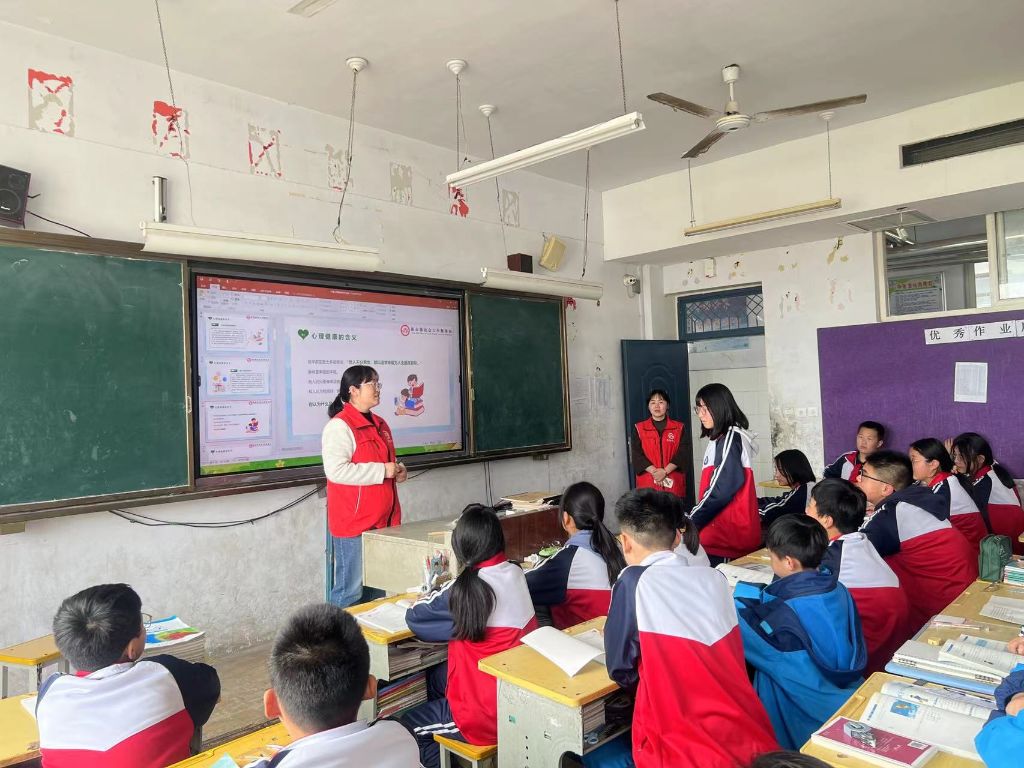 为进一步提高未成年人心理素质,促进青少年身心健康和谐,提高自我保护能力,4月10日,新市镇社工站联合新市镇卫生院在新市镇中学初一二班开展“携手同行 护‘未’成长”活动,的青少年心理健康活动。