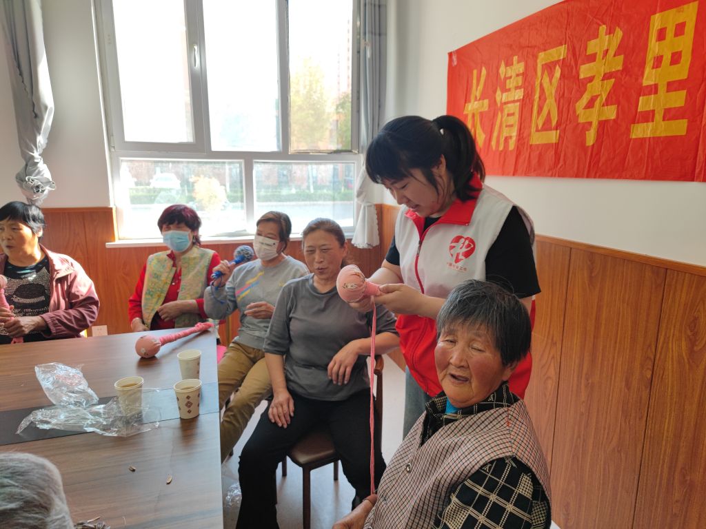 在制作过程中,社工们时刻关注着老人们的状态。当发现有老人因制作不顺利而面露沮丧时,社工立刻上前,给予鼓励和安慰,用幽默的话语缓解老人的焦虑情绪;当老人们完成作品,露出开心的笑容时,社工们也由衷地为他们感到高兴,及时给予赞扬和肯定。现场欢声笑语不断,老人们在社工的陪伴下,不仅收获了亲手制作的艾草锤,更收获了满满的成就感和幸福感。