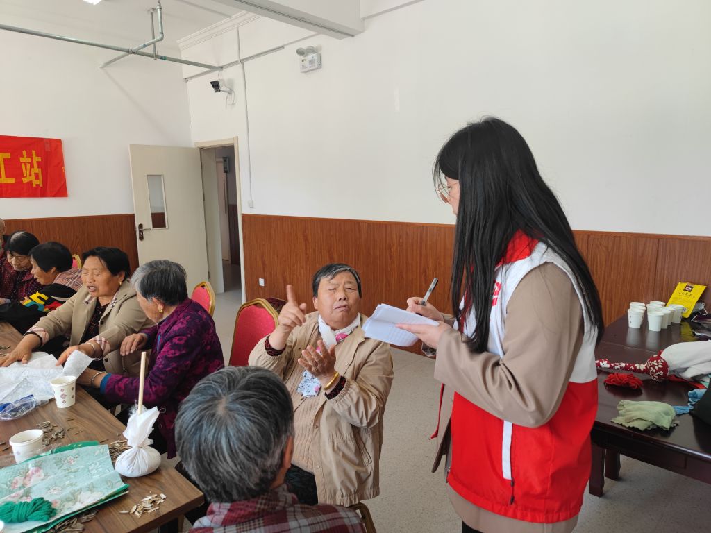 活动开始前,社工们早早来到现场,精心准备所需材料。从挑选优质的艾草、缝制锤套的布料,到准备针线等工具,每一个细节都经过反复考量。活动现场,社工们化身耐心的 “老师”,详细讲解艾草锤的制作步骤。他们一边示范如何填充艾草、缝制锤体,一边走到老人身边,手把手指导,确保每位老人都能跟上节奏。面对眼神不太好、手脚不太灵活的老人,社工们更是弯下腰、放慢动作,不厌其烦地讲解,直到老人完全掌握。