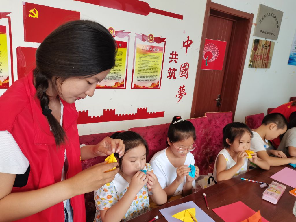 折纸是一项民间传统艺术,也是深受儿童喜欢的一种小工艺,它通过剪、折、粘贴、描绘等手段,巧妙地把纸制成各种生动有趣的形象。为了更好地促进辖区内文化多元化发展,提高儿童手脑协调能力,增强同辈交流、共享折纸乐趣。8月17日五峰山街道社工站链接大学生志愿者来到邱庄村开展了“巧手折纸 美丽绽放”手工活动。本次活动旨在通过手工折纸为载体,促进孩子们之间的情感交流。