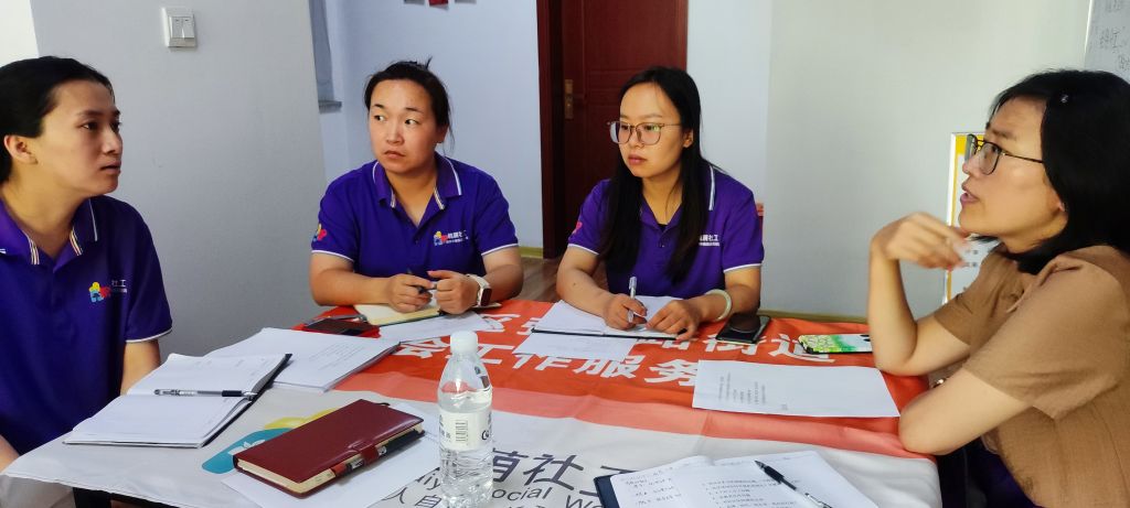 为梳理张庄路街道社工站中期评估中所出现的工作难点及痛点,提升专业服务能力,增强专业服务成效,夯实驻站社工综合能力,理清社工站下半年工作方向,8月11日上午,山东建筑大学社会工作专业韩晶老师与历城区和美社会工作服务中心督导主任周瑞敏一起来到槐荫区张庄路街道社工站进行实地督导,社工站站长及三名一线社工参与本次督导。