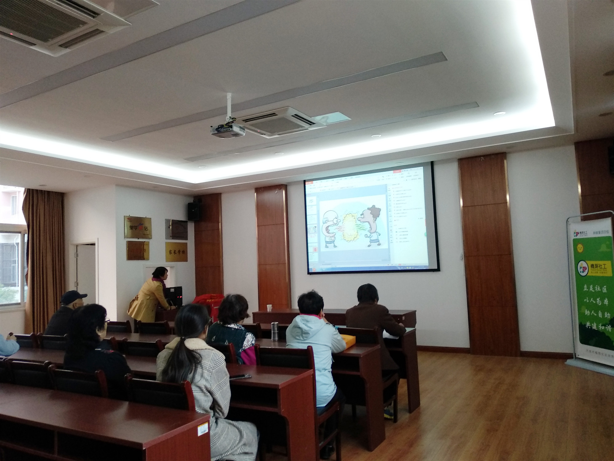 在讲座活动中,严老师用幽默诙谐的语气与PPT演示生动形象的向长者们讲解冬季中医养生的知识,其中包含冬季如何去火、如何识别体内的湿气、在饮食方面如何调理等多种常见问题。在场的长者们都表现出了非常良好的精神状态。对不懂的地方进行提问,严老师也耐心的对问题进行解答,整个讲座氛围轻松有趣。