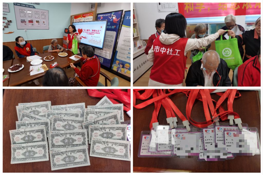 社工站链接七东社区开展爱心餐券、卡片发放活动,活动室内老人们围坐在圆桌前,桌上摆满了瓜子点心,社工则在屏幕前为老人们介绍:“大爷大娘们看我手里的卡片,这个是为老服务餐厅的老饭票可以免费去吃午饭;这个是爱心卡上面印着大家的住址信息有挂绳,咱们出门的时候可以挂在身上,迷路或者遇到其他情况向别人求助时使用;这个是社工站为大家准备的清洁包,洗洗涮涮的干家务时候里面的工具咱们就用到啦.”老人们边聊天边听介绍,这些老人是辖区的独居困难老人,平时鲜少参与社区活动,在社工的介绍下互相认识聊天,构建起属于他们的社会支持网络。