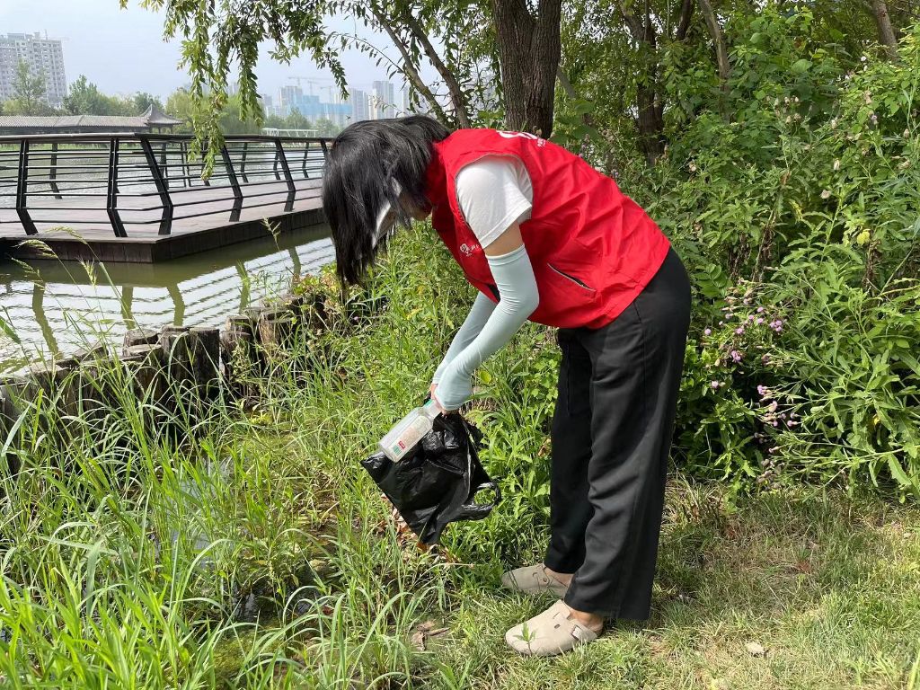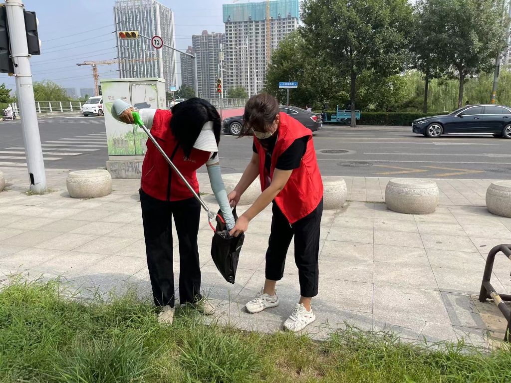 不仅如此,社工们还手持垃圾袋和工具,认真地捡拾社区内的垃圾。无论是道路旁的废纸屑,还是草丛里的塑料瓶都被他们一一拾起,用实际行动为社区环境的整洁贡献力量。