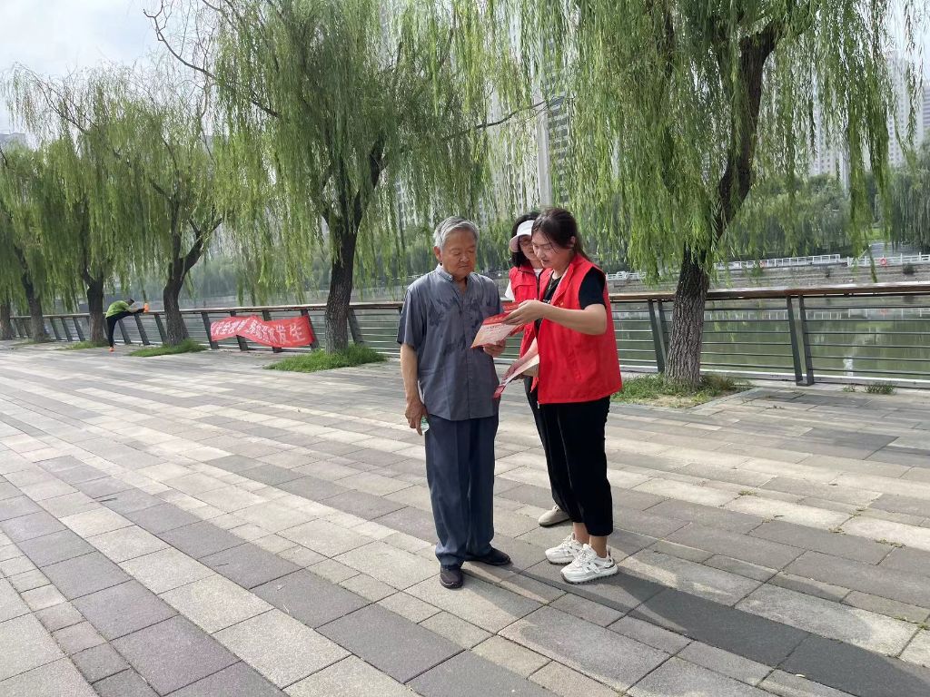 社工们以身作则,积极投身到环保行动中。他们走进社区广场,热情地向居民发放环保单页,耐心地讲解生态文明的重要性和日常生活中的环保小窍门。单页内容丰富多样,涵盖了节约能源、垃圾分类、绿色出行等多个方面,旨在引导居民形成绿色低碳的生活方式。