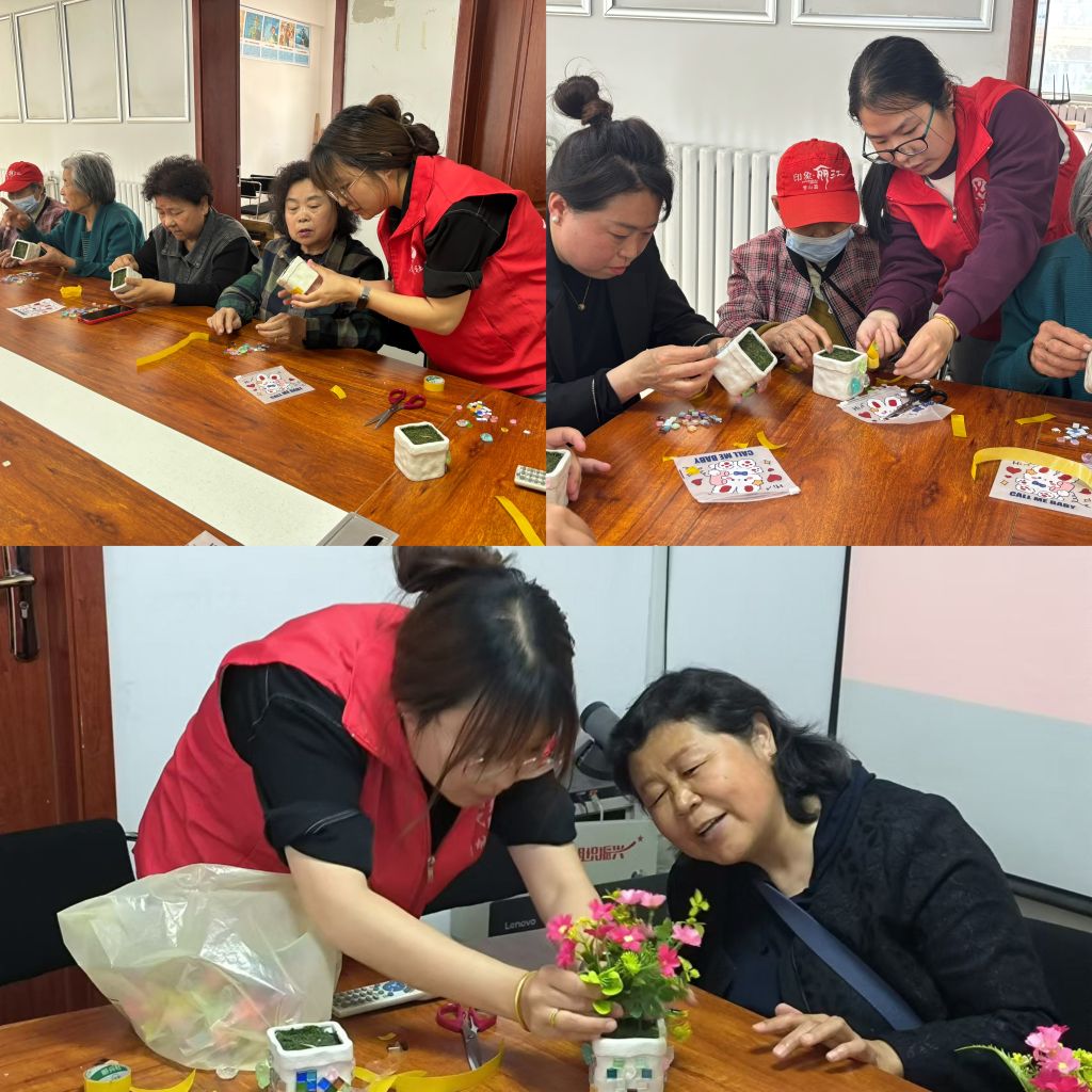 在这春意盎然的四月天里,非遗手工小组成员再次以手工为媒介,再启匠心之旅。4月10日,洪家楼街道社工站与花园北区社区联袂呈现"手工DIY小花盆"主题活动。作为非遗手工系列活动的生动延续,本次手工融合马赛克镶嵌与现代花艺,为社区居民搭建起展示才情、交流心得的艺术舞台。