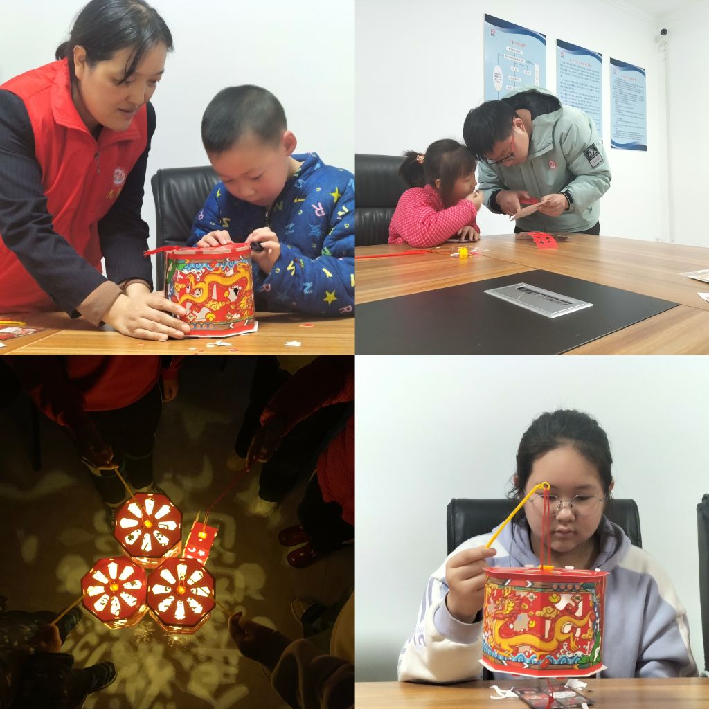 在活动伊始前,社工向孩子们介绍了元宵节的历史和习俗,让他们了解到元宵节吃元宵、赏花灯、猜灯谜等传统活动的文化内涵。随后志愿者把提前准备的彩色纸张、投影灯、胶带等制作灯笼所需的材料,给孩子们发放下去,孩子们一边听着社工的讲解,一边动手制作灯笼,制作的过程不仅锻炼了动手能力,还增长了知识。不一会儿,一个个色彩斑斓、造型各异的灯笼就在孩子们的手中诞生了。这个灯笼好漂亮啊,我们可以挂在家里吗?活动现场充满了欢声笑语和浓浓的节日氛围。孩子们互相交流着制作心得,分享着成功的喜悦。他们纷纷表示,通过这次活动,他们不仅学会了如何制作灯笼,还更加深入地了解了元宵节的传统文化。