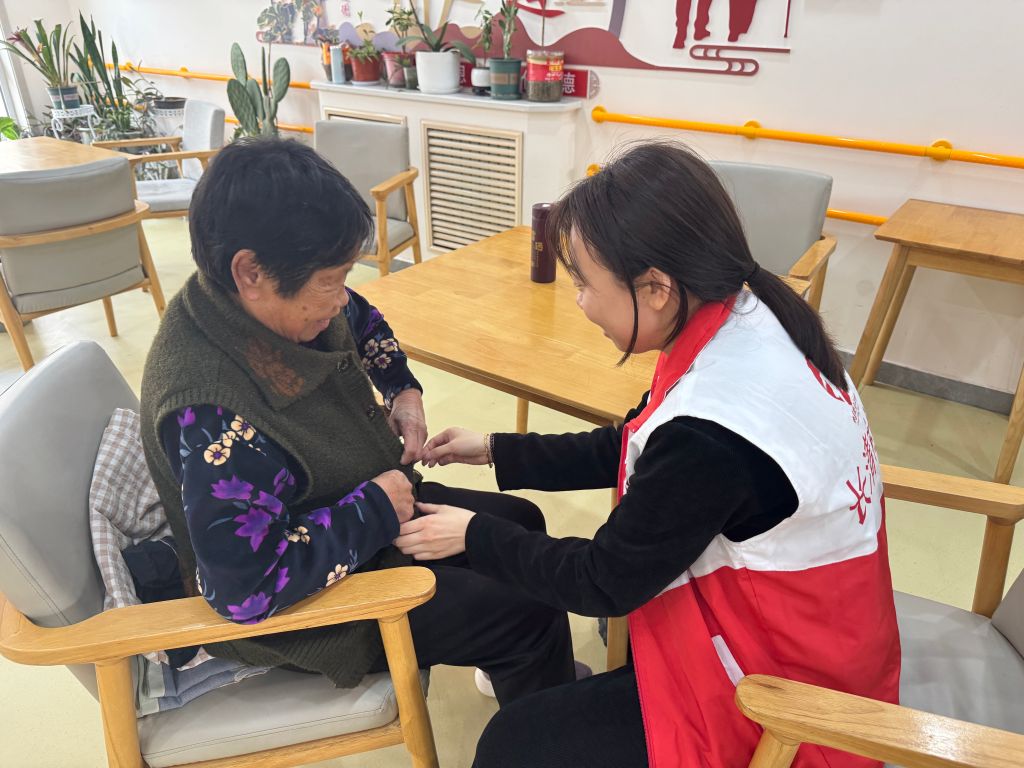 活动伊始,社工们首先引导老人们进行了穿衣训练。他们准备了各种款式的衣物,从简单的套头衫到带有纽扣的衬衫,逐一指导老人们如何正确穿衣。社工们耐心地示范每一个步骤,并鼓励老人们自己动手尝试。在社工的细心指导下,老人们逐渐掌握了穿衣的技巧,不仅成功穿上了衣物,还学会了如何调整衣物的舒适度。