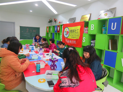 活动伊始,项目组主带社工简单介绍了项目组和此次活动,本着更好的服务于小组成员的原则,本次依然执行“社工+志愿者”的服务方式;为保障小组活动日后良好开展,社工与成员们一起商量并签订了小组契约;本期手工串珠活动是本年度最后一期,又逢年关,项目组特地选择串制代表吉祥如意,大吉大利的“中国结”。为了能保质保量的完成后期的串珠制作,此次活动社工及志愿者组织成员们从串制简单的隔热垫开始,让大家首先掌握加珠、回串、过珠、打结等串制方法,整个活动在轻松快乐的氛围中结束,成员们都期待着下节课程的开展。