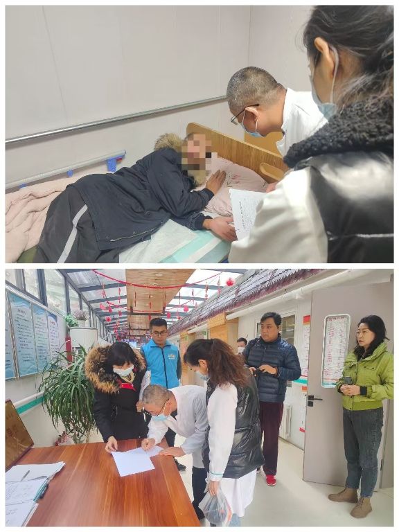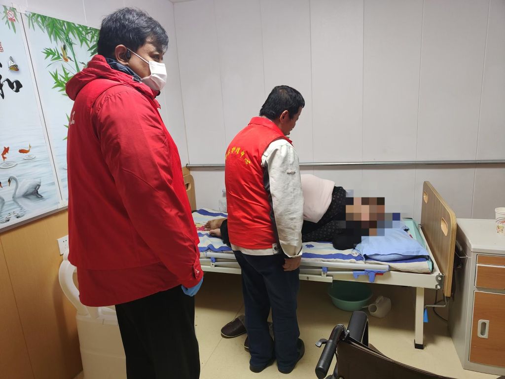 送老人去护理院之前,社工站联系社区医院的医生对老人的身体情况进行了全面评估。老人一改刚刚接受救助时的窘迫,身体明显有了气力,虽然无法表达,仍乐呵呵的配合着医生的询问。在医生的仔细评估后,认为老人的身体情况已经满足集中供养的要求,随时可以送老人去护理院。