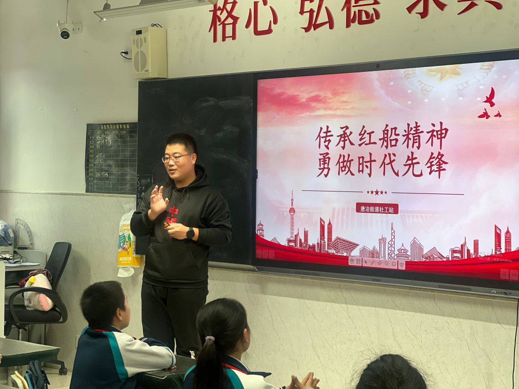 儿童是祖国的未来、民族的希望,是社会主义现代化事业的建设者和接班人。为充分发挥党建引领作用,传承和弘扬红船精神,引导广大儿童听党话、跟党走,学习“红船精神”的丰富内涵,体会“红船精神”的时代价值,从中汲取信念的力量。1月18日,唐冶街道社工站在华夏山青社区党委的支持下走进山东师大第二附属小学,开展“弘扬红船精神,传承红色基因”红色主题教育活动,50余名学生在社工的带领下,重温百年党史、学红船精神、做红船模型、体验革命情怀。