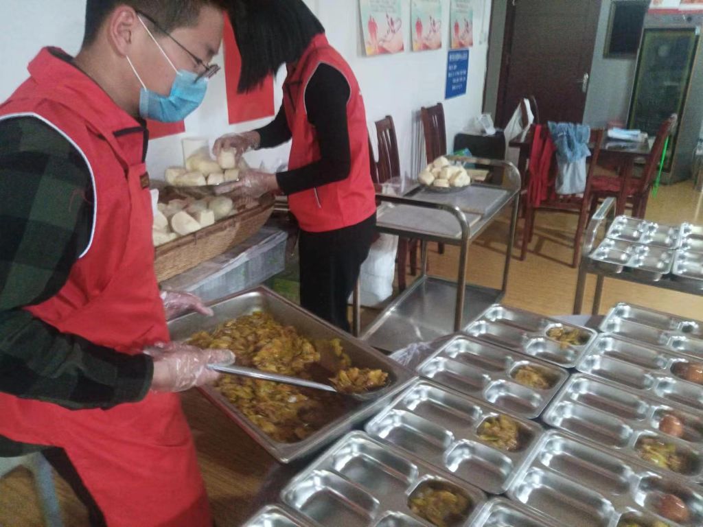 5月11日上午,北园街道社工站接到了汇源华庭社区发出的求助申请,因其工作人员临时请假导致人力空缺,照料中心的36名高龄老人将面临午餐无人照料的情况。得知此事后,北园街道社工站4名社工来到该社区助餐食堂,了解了基本情况后,便开始助餐工作。
