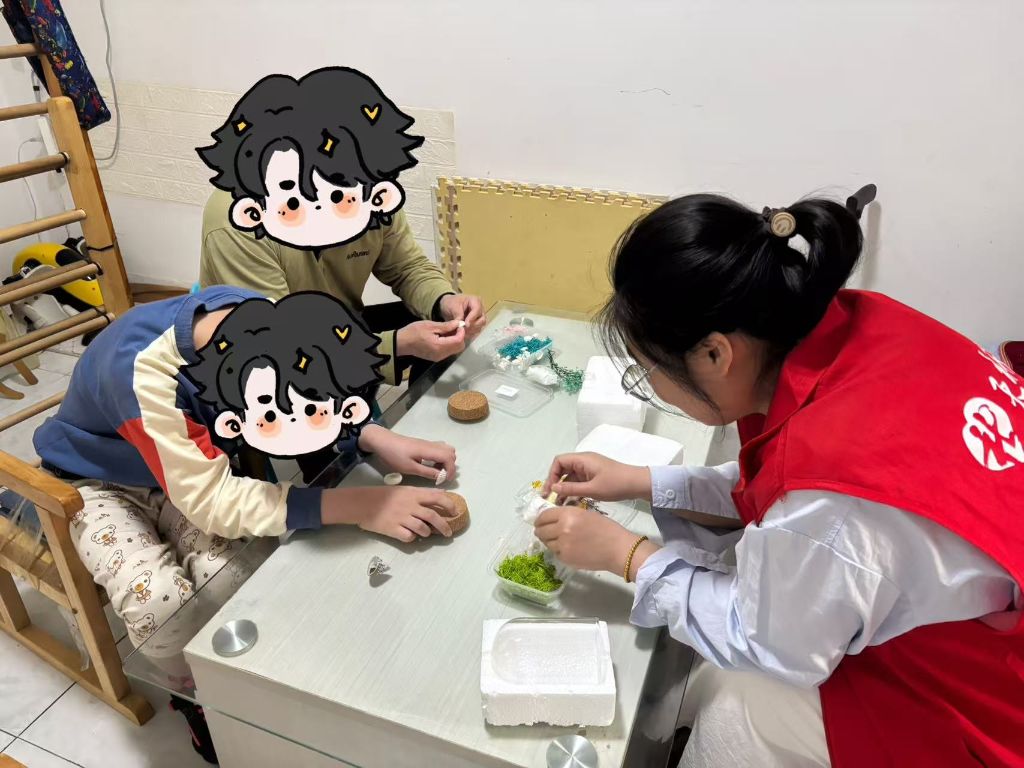 在个案服务过程中,社工与案主一起进行玻璃画小夜灯、DIY永生花插花制作,锻炼案主动手能力,最终通过成果展示给予案主及其家庭正向鼓励。并为案主送上课外阅读书籍,以童话故事、励志文学拓宽孩子们的视野,激发他们的阅读兴趣和学习热情。在整个过程中社工充分发挥“在一起”理念,扮演使能者角色,引导家人以优势视角看待问题。