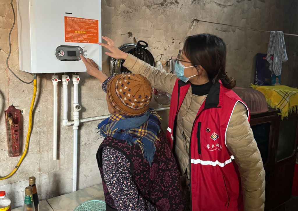 每到一户,社工都会仔细查看老人的取暖方式。对使用天然气取暖的老人,社工会细心叮嘱老人,要及时检查燃气软管安全,同时要确保烟感报警器正常使用,谨防一氧化碳中毒。
