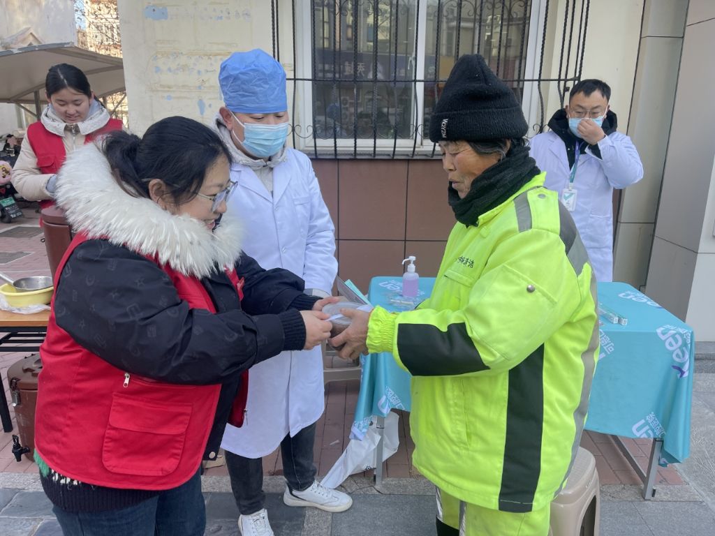 俗话说“过了腊八就是年”,在这一天喝上一碗腊八粥是老百姓最传统、最讲究的习俗,而在这个特殊的日子里,我们的环卫工人们却依然坚守岗位,为城市的清洁和美丽付出着辛勤的汗水。因此,社工与社区志愿者早早地准备好香浓的腊八粥,在环卫工人工作间隙为他们送上一碗热气腾腾的腊八粥,同时,还为他们提供了一个歇歇脚的场所,舒展缓和了被寒风冻僵的手脚,每一位环卫工人接过腊八粥时脸上都洋溢着止不住的笑容。本次腊八节送暖活动也吸引了辖区居民的热情参与,一位80岁高龄的居民赞扬道:“喝下这碗腊八粥,不仅胃里暖和和的,心里也暖暖的,社工想的太周到了。”