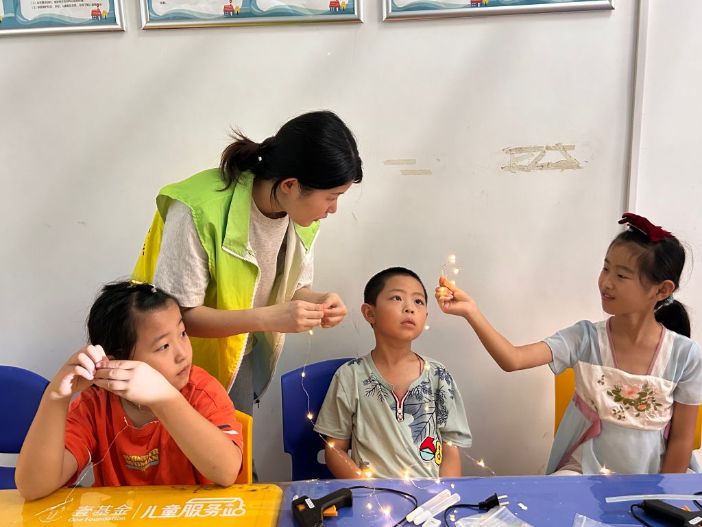 最后,社工帮助孩子们将开关安排好,并在所有装饰粘好后,再放上水晶石。孩子们看着自己亲手制作的荷花小夜灯,脸上洋溢着满足和自豪的笑容。“这是我做的荷花小夜灯,我要把它放在我的床头。”心心兴奋地说。其他孩子们也纷纷表示要将这盏灯带回家,作为这个暑假最珍贵的纪念。