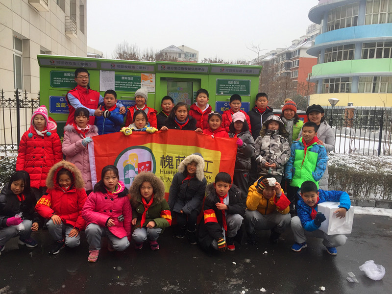 大雪停了,社工与易分宝工作人员带着小志愿者们到了社区中的垃圾分类站,对于垃圾分类具体操作,垃圾箱分为四个部分,分别是金属投放口、塑料投放口、垃圾分类终端机、纸类投放口。同学们在工作人员的引领下将自己携带的垃圾放入垃圾箱内,学会了如何操作垃圾分类箱。
