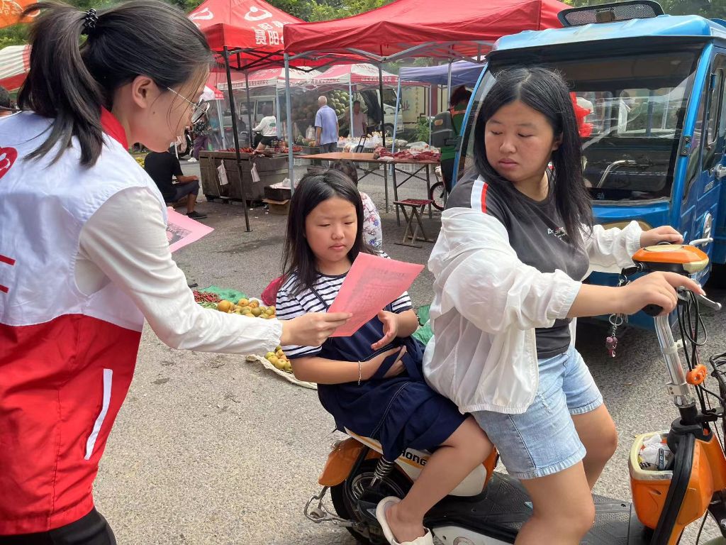 暑期将尽,孩子们即将回归校园,但安全不能大意,防溺水安全教育不能松懈。考虑到集市人流量大,赶集群体范围广泛,崮云湖社工站选择在乐天大集开展夏季防溺水宣传活动。活动中社工向儿童分发宣传页,向家长耐心讲解防溺水的重要性,提醒他们时刻关注家中儿童的安全情况。
