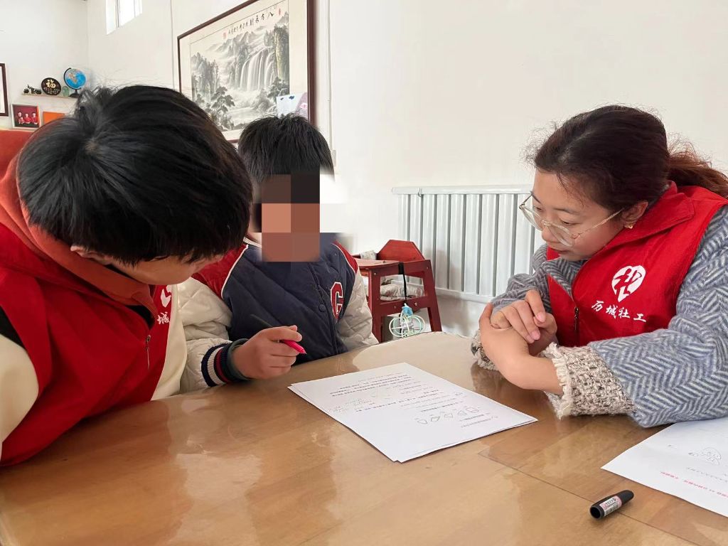随后社工询问了豪豪近期的学习情况,并检查了豪豪的家庭作业,从家庭作业完成情况看,平常豪豪在家做作业无人辅导,有时作业完成的很不理想,但社工辅导后发现豪豪对老师在课堂上教的内容都能举一反三,只是做作业时不仔细。社工反思以后要善于细微之处多观察,要给以豪豪充分的信任和沟通。之后,社工与豪豪各自分享自己的趣事,比如社工上学时有趣的老师、学校好吃的食物以及有什么需要帮助的地方等等,几人有说有笑。通过这种方式,豪豪的行为发生了一定的通过治疗与教育,豪豪更深层次的感受到社工对自己的关心、爱护、支持与鼓励,求知的需要随之产生。表现在社工为豪豪补课中更主动提出疑惑,参与问题讨论,通过社工不断积极鼓励,使其成功感得到强化,学习兴趣和自信心逐步提高。