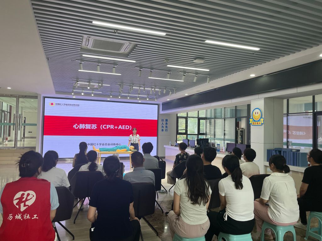 随着社会的发展,公众对急救知识的需求日益增长,急救技能的普及对于提高公众的自救和互救能力至关重要。为提升社区居民的应急救护能力,增强自救互救意识,7月30日,唐冶街道社工站联合华夏山青社区链接济南市济南市红十字应急救援队资源,开展急救知识培训活动。