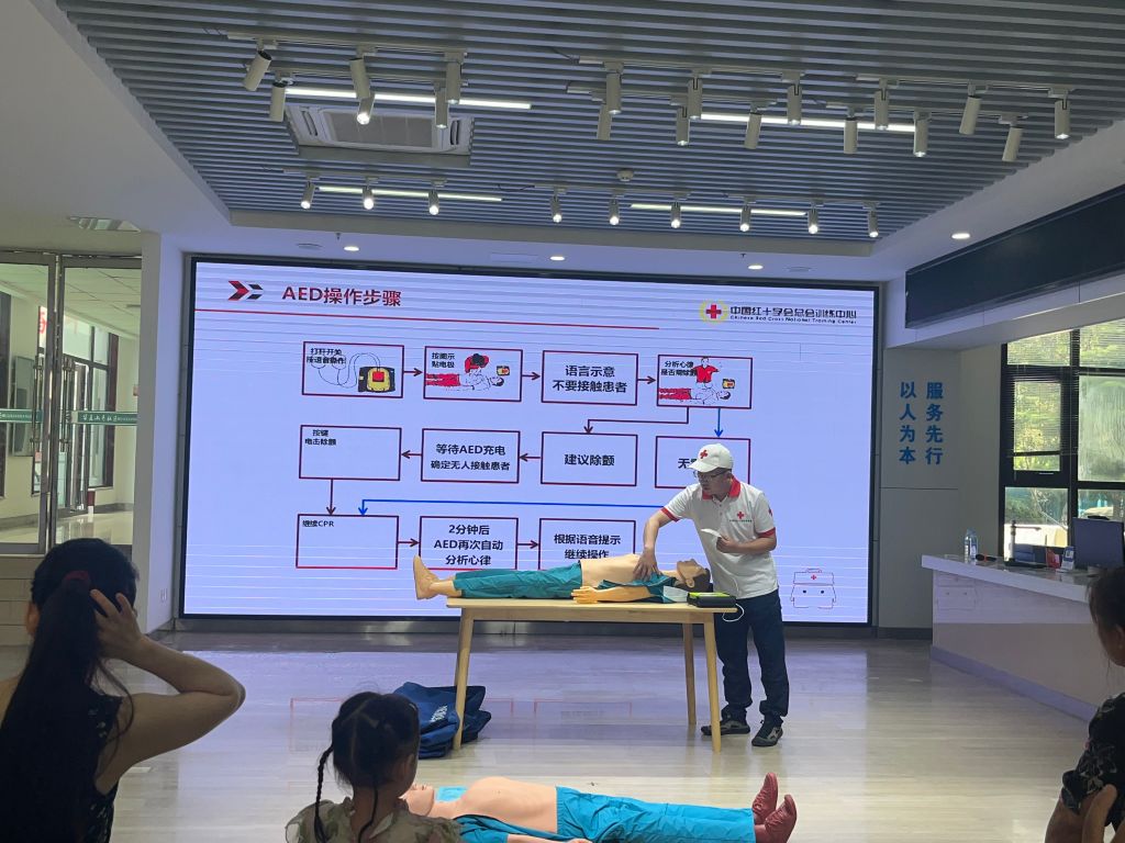 活动中老师详细讲解了心肺复苏的操作方法,对安全保护心脏骤停的判断、呼救、胸外心脏按压、清除口腔异物、打开气道、人工呼吸和胸外按压与人工呼吸的比例、复苏成功的指征等步骤进行了认真细致地讲解。同时,师还详细阐述了AED的工作原理、适用场景以及在急救过程中的关键作用。