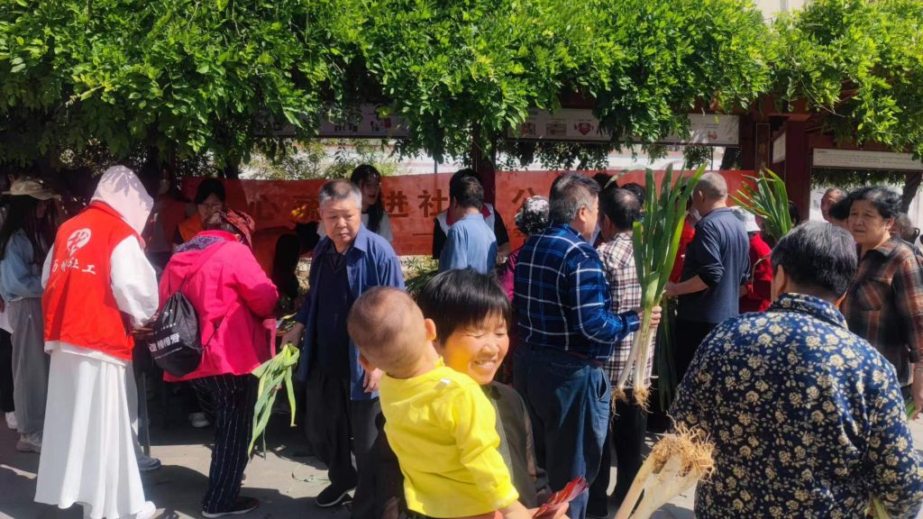 为了让居民感受到来自社工站的关怀与温暖,同时加强社工站与社区间的紧密联系,4月27日上午,社工站链接爱心企业山东硒来旺农副产品有限公司、山东工艺美术学院工业设计学院志愿服务队联合甸柳社区开展“爱心蔬菜进社区,公益行动暖人心”活动,将一颗颗挺拔而立的新鲜大葱免费发放给社区居民,将温暖与关怀送到居民心坎上。