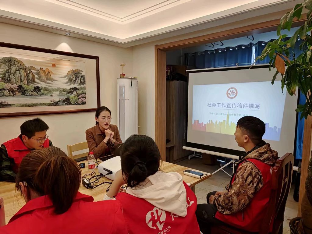 为了进一步提升社工的文字表达能力,加强社会工作的宣传与影响力,济南泉芯养老机构在4月29日下午邀请到了济南社会工作协会宣传教育部戚钰千,为北园、药山、桑梓店街道社工站的同工们带来了一场深入浅出、实用性很强的宣传文稿撰写技巧讲座。