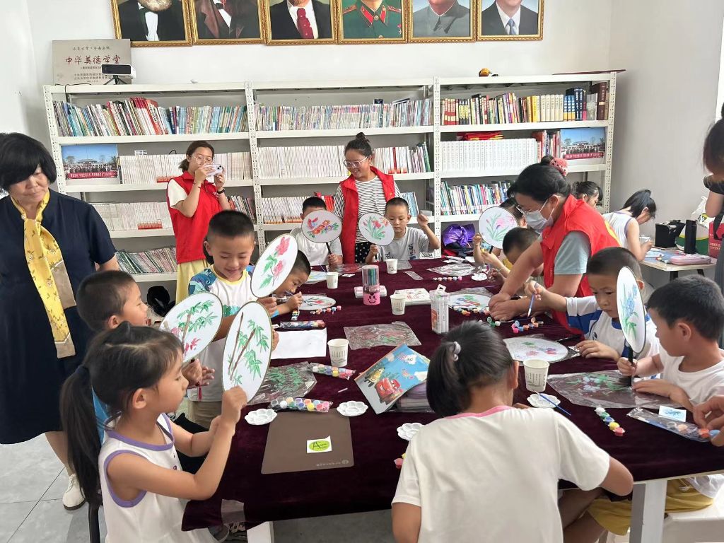 此次参加活动的对象为邢家洼村幼小衔接的儿童,活动开始,社工首先与小朋友们进行了良好的互动并向小朋友介绍到扇子不仅是夏日纳凉的工具,同时也承载着典雅与精致的文化内涵。社工带领小朋友们了解了团扇之后,开始教授孩子们分发各种图案的扇面、五彩的颜料和调色盘。活动中,社工鼓励孩子们充分发挥自己的想象力,通过图片的参考加自己的创新绘制成不一样的团扇。随后,社工邀请每位小朋友介绍自己所创作的作品的原因,通过“动手+动口”的方式,提升孩子们的创作能力和表达能力,为开学后孩子们能够更好地适应新环境奠定基础。