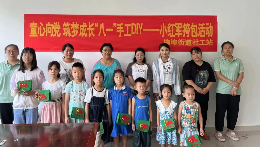 为进一步激发柳埠街道青少年的爱国热情,营造浓厚的拥军氛围,传承红色基因。8月1日,柳埠街道社工站开展童心向党,筑梦成长——“八一”手工DIY小红军挎包活动。