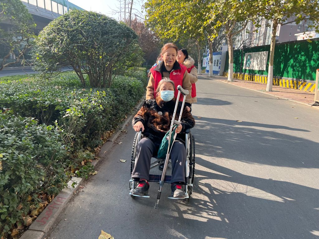 段店北路街道社工站所在的财富壹号花园社区里有一位热心的志愿者阿姨姓樊,每一次志愿活动都有樊阿姨忙前忙后的身影,然而就在上个月,樊阿姨不小心把脚扭伤了,不仅社区活动参加不了,连下楼都很困难,志愿服务队的伙伴们时间长了也都很想念她。正值“12.5”国际志愿者日,天气又好,社工和志愿者们借了一个轮椅,来到樊阿姨家,推着她一起去花圃公园散散心。和伙伴们说说笑笑间,扭伤脚的阴霾心情也如乌云散去。