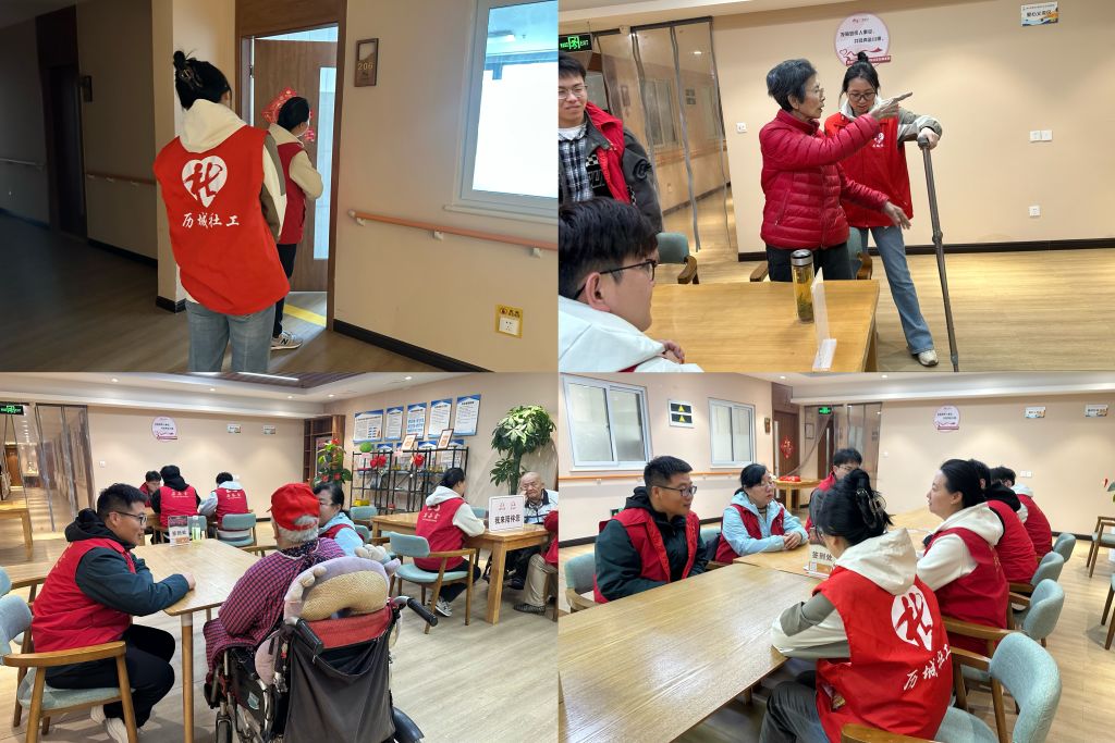 4月7日上午,春江郦城东社区仁德至护综合养老服务中心的206房间里,81岁的退休工人时慧英阿姨正戴着老花镜,正向来自山东青年政治学院的三名社工志愿者展示她的书法作品,并骄傲地展示上次志愿服务活动后同学们送给她的照片,同时,志愿者根据时阿姨的表现,随时填写着《老年群体自适应评估表》。这是唐冶街道社工站“青春暖阳映桑榆”志愿服务活动的常规服务场景,不同于传统志愿活动的情感陪伴,唐冶街道社工站的社工团队将通过系统化工具捕捉老年群体的真实需求。
