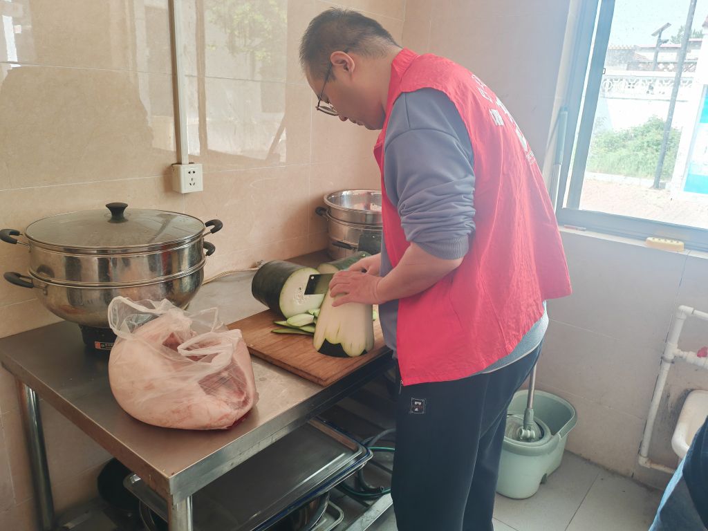 一大早,枣园社工站社工们就来到了幸福院摆放桌椅,确保用餐环境宽敞舒适。随后根据老年人饮食特点和营养需求,与食堂沟通制定菜单,与志愿服务队一起搬运食材、准备餐具,每一项助餐准备工作都干得井井有条。上午11点,幸福院已经是饭香扑鼻,老人们有序入座,等待今天的饭菜出锅。