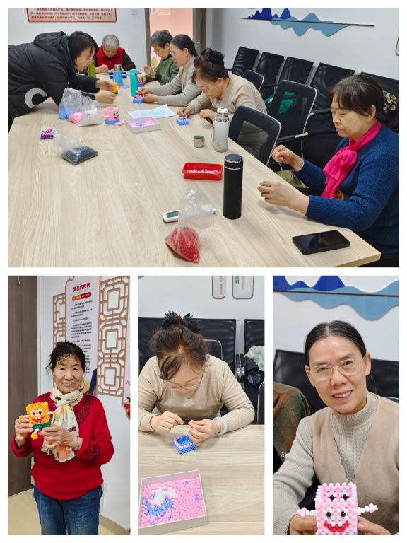 当社工们告知居民活动编织的所有成品将送至辖区弱势儿童手中时,居民纷纷积极表示要参加。在社工的带领下居民的手指在一颗颗珠子间缓慢穿梭。编织过程中,大家互相交流,互话家常,在轻松愉悦的氛围中,一个个精美的笔筒也逐渐成形。这些来参加活动的居民有的是退休下岗的老党员,有的是社区热心的志愿者,还有的则是帮忙照顾孙辈的慈祥长辈。他们中有的人虽已年迈,手指不再灵活,但想为社会继续发光发热的心却依然炽热。