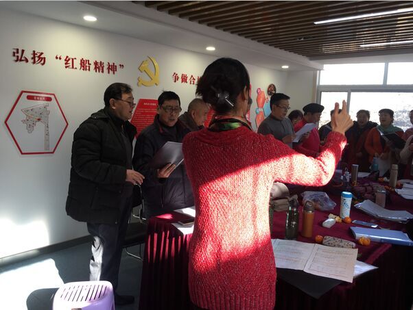 合唱团由社区歌唱爱好者组成,队员们伴着节奏反复磨合,从歌词到曲调,通过不断练习寻找问题、调整步调。合唱队的盛老师演示了准确性、统一性、平衡性及和谐性等基本技巧要领,讲解了声音位置和声音处理等基本理论常识。整个场面井然有序,参与队员热情高涨。