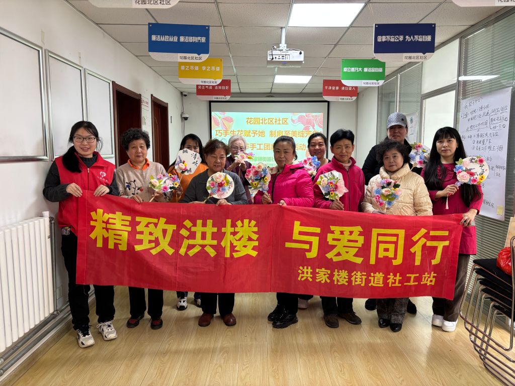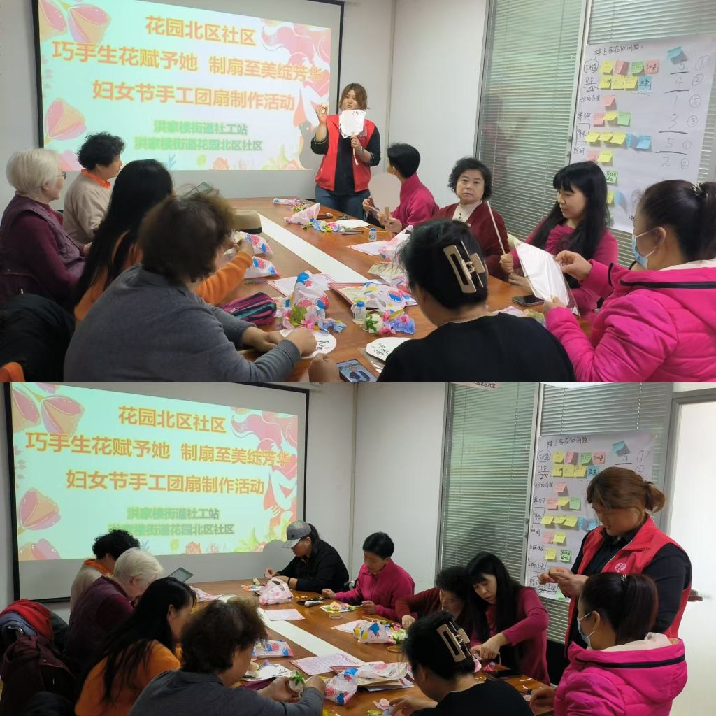 “以花之名,共赴花事”。为迎接三八国际妇女节的到来,增强社区女性的归属感与幸福感,同时锻炼大家的动手能力。3月7日,洪家楼街道社工站携手花园北区开展了“巧手生花赋予她 制扇至美绽芳华”手工DIY花扇制作活动。此次活动吸引了众多社区女性的积极参与,现场气氛温馨而热烈。