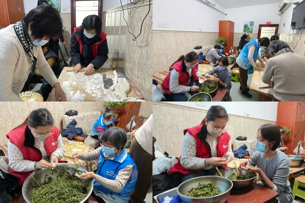 社工与志愿者一起为高龄老人包水饺