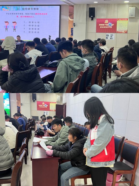 在互动环节,心理咨询师引导居民进行放松训练,教授实用的心理调适技巧,如深呼吸放松法、冥想放松法等。居民们积极参与,认真学习,在轻松愉悦的氛围中,掌握了缓解压力、调节情绪的方法。社工们穿梭其中,与居民亲切交流,耐心倾听他们的心声,为有需要的居民提供个性化的心理支持与建议。