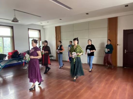 活动开始后,社工首先带领组员们进行了乒乓球接力赛团队热身活动,通过开展团队游戏,组员进一步增进了彼此之间的信任和合作精神。随后,组员夏阿姨带领大家进行跳舞前必要的准备活动,然后从站姿、步伐训练、基础的舞蹈动作等方面一一给大家示范、纠正,大家都热情高涨,认真学习,争取把每一个动作都做标准。简单的动作学会后,组员们已经可以跟随音乐舞动起来了。细腻的音乐、轻柔的舞姿深受组员们的喜爱,大家对夏阿姨耐心地教学也赞不绝口。在休息时,对于自己不熟悉的地方也主动去和夏阿姨进行探讨和学习,组员之间也能够互相教学,团队之间配合的也更加默契。