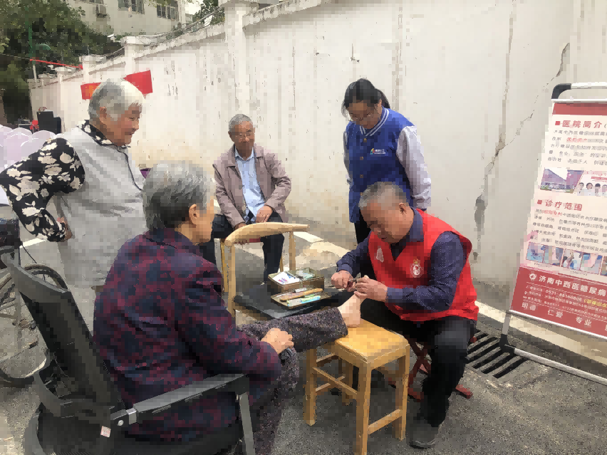 负责修脚的刘老师是个老党员,他的座右铭是:赠人玫瑰手有余香,所以他热衷于做志愿服务于人民。只见他一边修脚一边为老人讲解,还时不时地说个笑话逗得老人哈哈哈大笑。