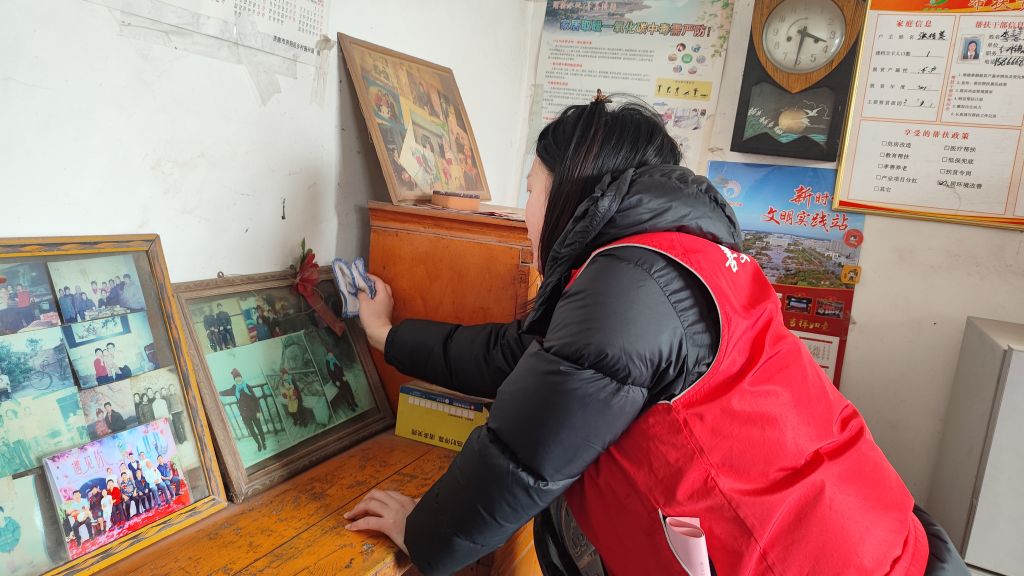 一大早,社工与志愿者们整装待发,带着扫帚、铁锹等清洁工具以及生活必需品,驱车前往特困老人家中。这些特困老人大多因年事已高、身体不便,难以自行维持家居环境的整洁与安全,近日的大雪更是给他们的生活带来了诸多不便。到达目的地后,志愿者们分工合作,一部分志愿者负责清扫院落和门前的积雪,另一部分则走进屋内,开始擦拭门窗、整理家务。在劳动过程中,社工还与老人们亲切交谈,倾听他们的故事,了解他们的需求,提醒他们注意保暖和个人卫生,同时留下了联系方式,告诉他们有需要随时打电话,老人们脸上洋溢着感激的笑容。