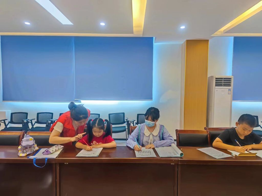 在一笔一划的巧妙书写中,孩子们从汉字中感受美的启迪和熏陶,潜移默化地学会了做人,学会了审美,学会了养心。在随后的练习中,社工及时纠正孩子的书写姿势、指导孩子们进行书法练习。