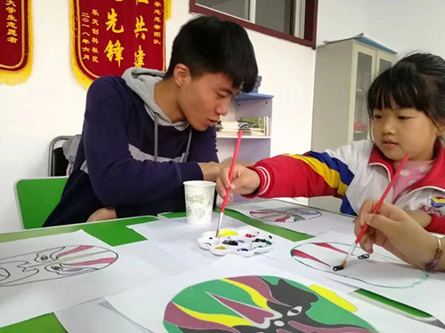 社工与学生们绘制脸谱
