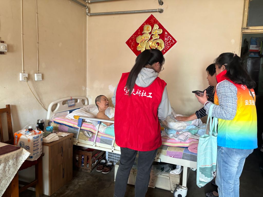 探访过程中,社工一行详细询问失能老人健康状况、饮食起居情况以及日常生活自理能力,护理人员对老人进行了全面的能力评估,并根据老人需求为老人匹配对应的资源,为老人提供了个性化的护理指导。与此同时还为老人送上了纸尿裤等护理品以及生活用品,让他们感受到亲人般的关怀和温暖。