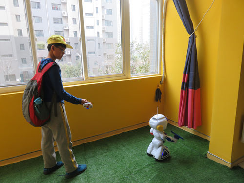 同学们一进门就被我们的街道实景体验区和高铁动车体验区吸引了,着实体验了足不出户就“观景”的感觉。进入环保科技体验区,同学们在感受、感叹新科技的同时,也表达了自己在现实生活中保护环境的一些想法。最吸引孩子们的还是我们的机器人,通过手机操控,机器人开始唱歌、跳舞、讲故事,这可激发了同学们的热情,有的同学竟然和我们的机器人比起了歌喉和舞技。随后,同学们进入虚拟体验区,着实过了一把司机瘾。健康体验区可是热闹非凡,同学们争先恐后的检测自己的身体指数,在比较与他人之间的差距时,也开始为自己制定了健康生活小目标。