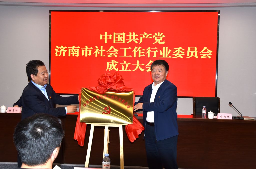 济南市民政局党组书记、局长孙义洪,市委组织部副部长宁延学为新成立的社会工作行业党委揭牌